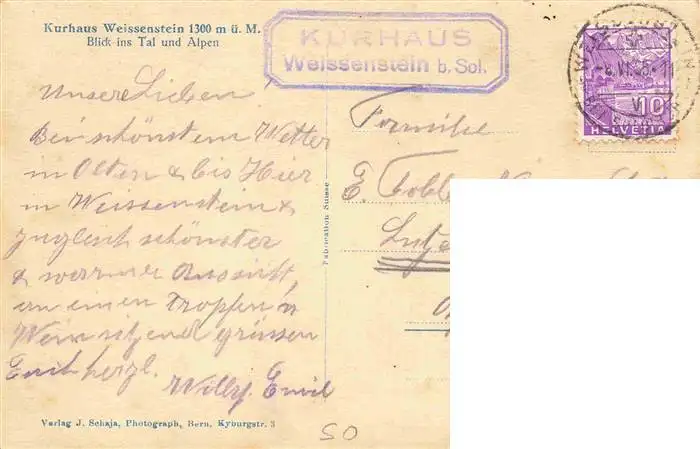Solothurn_Soleure_SO Panorama Kurhaus Weissenstein postalisch gelaufen 1921-1965 Erhaltung siehe scans [WerneD78] WernPID7