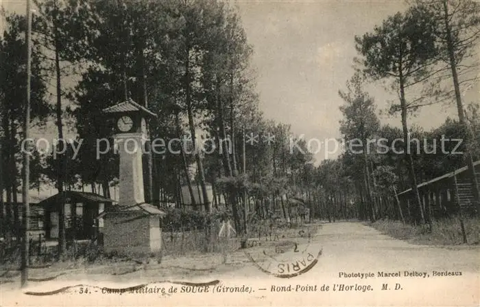 Souge_Indre Camp Militaire de Souge Rond Point de l'Horloge Souge Indre postalisch gelaufen bis 1920 Erhaltung siehe scans [WerneD78] WernPID7