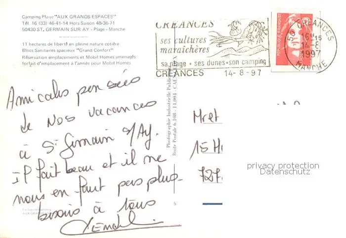 St-Germain-sur-Ay Camping Aux Grandes Espaces Vue aerienne postalisch gelaufen 1997 Erhaltung siehe scans [WerneD78] WernPID7