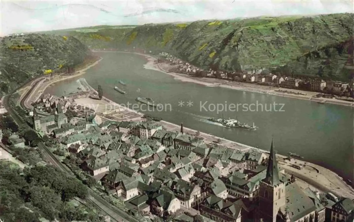 alte Postkarte St Goar Rhein Panorama Blick ueber den Rhein postalisch gelaufen Erhaltung siehe scans [FriedD77]
