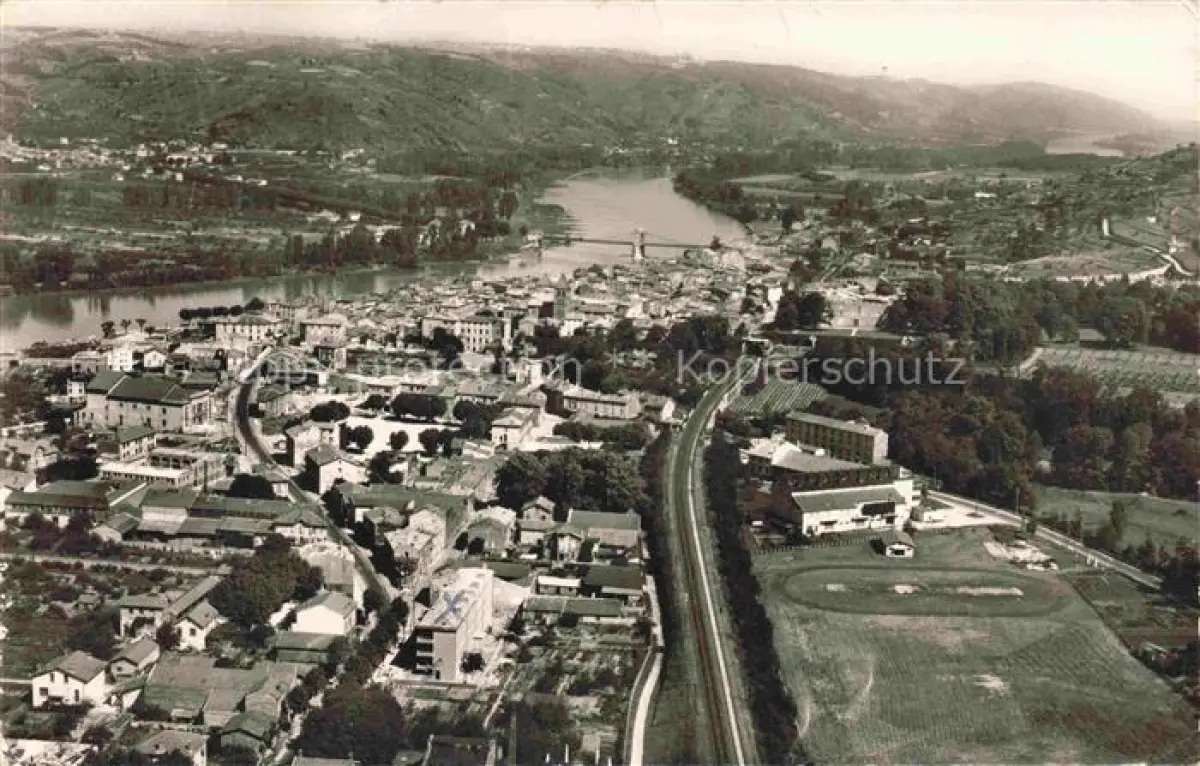 alte Postkarte St-Vallier-sur-Rhone VALENCE 26 Drome Vue générale aérienne Vallée du Rhône postalisch gelaufen Fliegeraufnahme Erhaltung siehe scans [FriedD77]