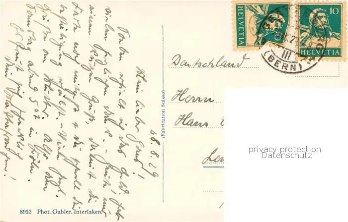 St_Beatenberg_BE mit Moench und Jungfrau postalisch gelaufen 1929 Erhaltung siehe scans [FriedD77] Frierer