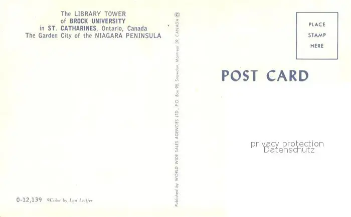 St_Catharines Library Tower of Brock University St_Catharines postalisch nicht gelaufen nach 1965 Erhaltung siehe scans [FriedD77] Frierer