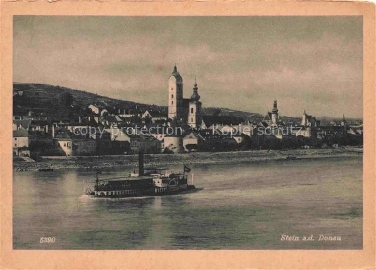 Stein Donau Krems Niederoesterreich AT Donaupartie Dampfer Kirche postalisch nicht gelaufen Erhaltung siehe scans [WerneD78] Wern Katcode 11390124030101