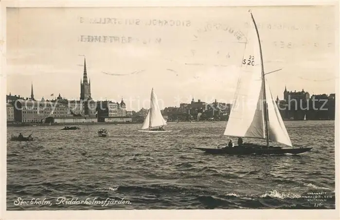 Stockholm Riddarholmsfjaerden Segelboot Stockholm postalisch gelaufen 1929 Erhaltung siehe scans [FriedD77] Frierer