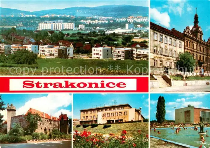 AK / Ansichtskarte Strakonice Celkovy pohled MNV Hrad Kultu dum Plavecky stadion Strakonice