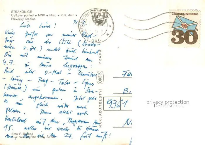 Strakonice Celkovy pohled MNV Hrad Kultu dum Plavecky stadion Strakonice postalisch gelaufen nach 1965 Erhaltung siehe scans [WerneD78] WernPID7