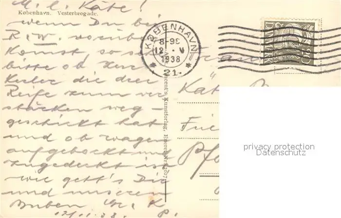 Strassenbahn Kobenhavn Vesterbrogade postalisch gelaufen 1938 Erhaltung siehe scans [PaolaD17] PaolPID1