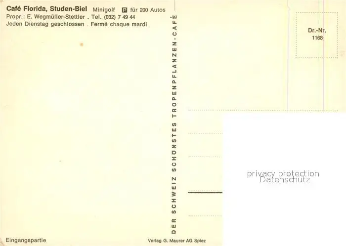 Studen_BE Cafe Florida Studen_BE postalisch nicht gelaufen nach 1965 Erhaltung siehe scans [WerneD78] WernPID7