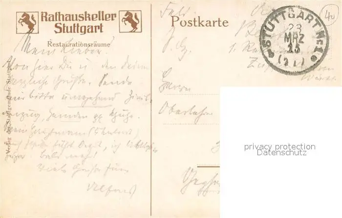 Stuttgart Kategorie Alte Ansichtskarten Postkarten bx94877 Stuttgart Rathauskeller Restaurationsraeume Stuttgart postalisch gelaufen 1915 Feldpostkarte Erhaltung siehe scans [FriedD77]