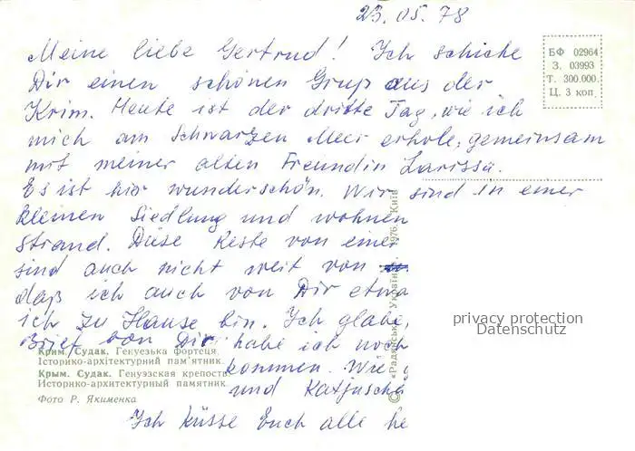 old postcard Sudak Genueser Festung postalisch gelaufen Erhaltung siehe scans [IrynaD87]
