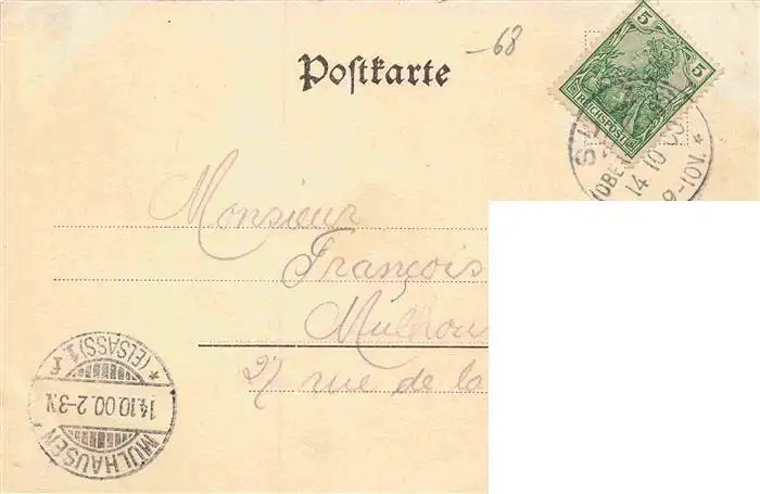 Sulz_68_Haut-Rhin_Elsass Ortsansicht postalisch gelaufen 1900 Erhaltung siehe scans [WerneD78] WernPID7