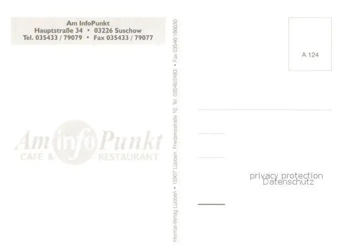 Suschow Am InfoPunkt Cafe-Restaurant Suschow postalisch nicht gelaufen nach 1965 Erhaltung siehe scans [LiesaD40] LiesID40