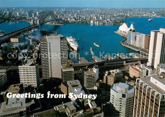 AK / Ansichtskarte Sydney_New_South_Wales A panoramic view over Circular Quay with the Oriana at the Oveerseas terminal the Harbour bridge an the Opera House seen from Australia Square Skywalk Sydney_New_South_Wales
