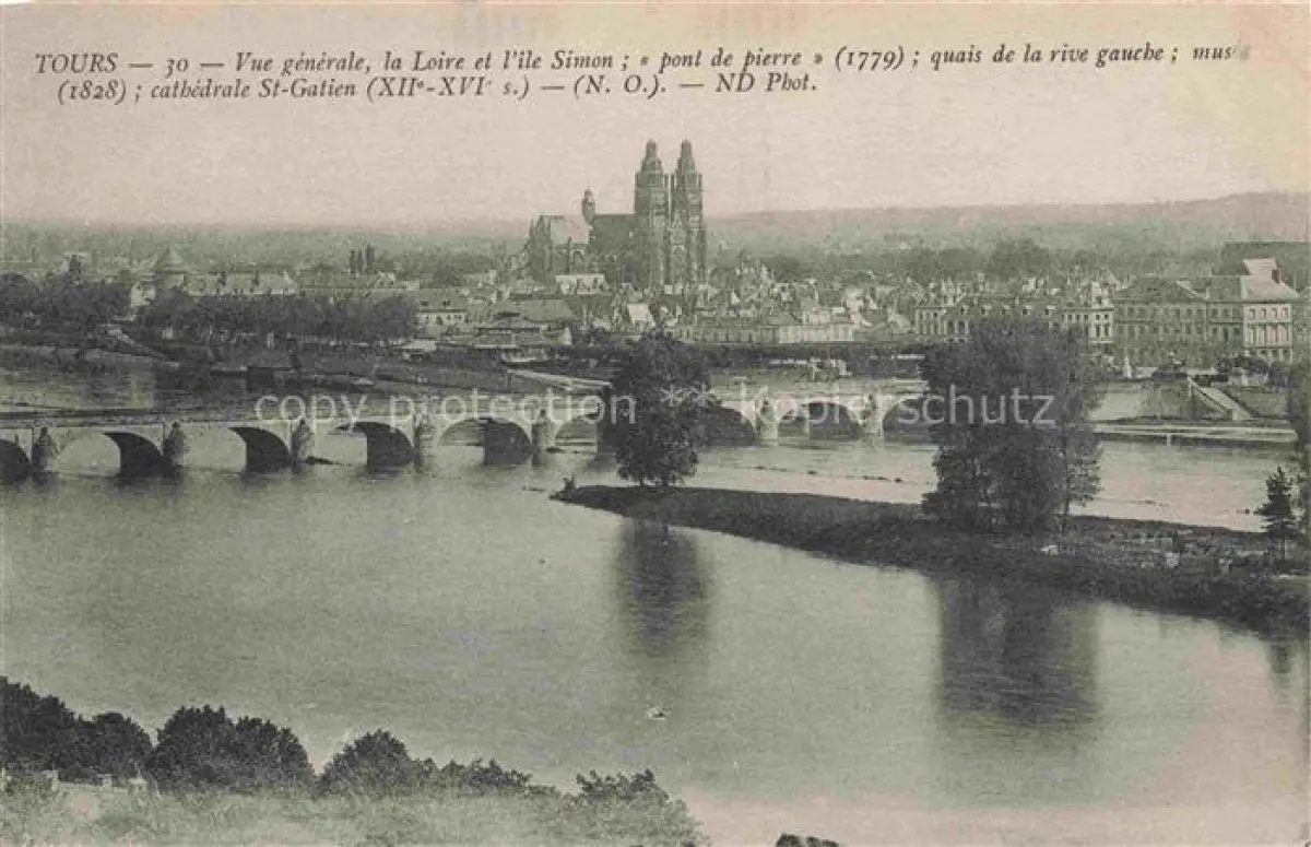 14113373 TOURS 37 Indre-et-Loire Vue generale la Loire et l'ile Simon Pont de pierre Quais de la rive gauche postalisch nicht gelaufen Erhaltung siehe scans [WerneD78] Wern Katcode 11170037237261