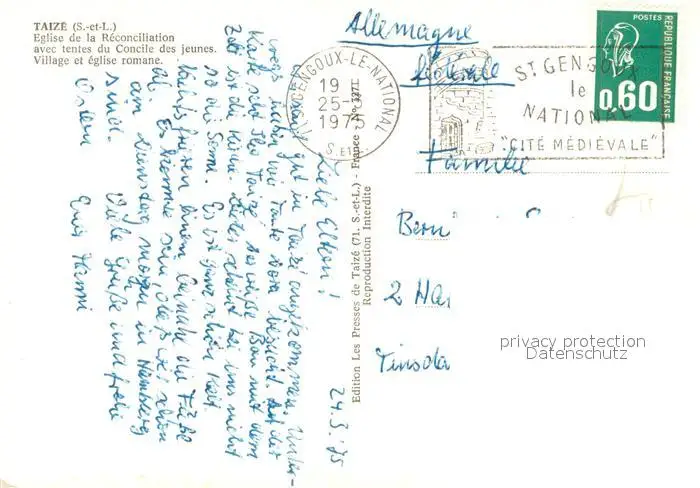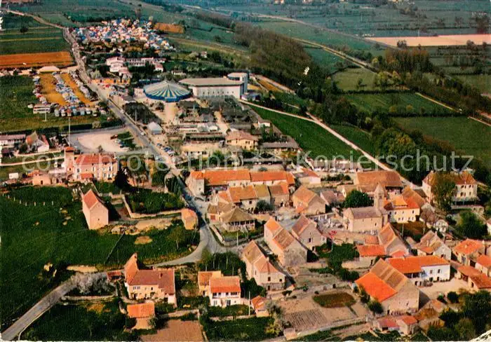 Taize_Saone-et-Loire Eglise de la Réconciliation avec tentes du Concile des jeunes Village et église romane vue aérienne Taize Saone-et-Loire postalisch gelaufen 1975 Erhaltung siehe scans [FriedD77] Frierer