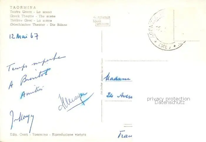 Taormina_Sicilia Teatro Grecp La scena postalisch gelaufen 1967 Erhaltung siehe scans [WerneD78] WernPID7