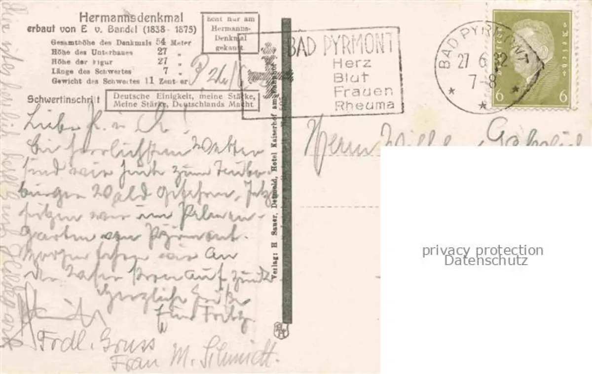 alte Postkarte Teutoburgerwald Hermannsdenkmal postalisch gelaufen Erhaltung siehe scans [WerneD78]