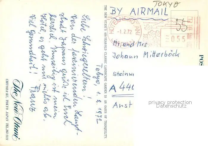 Tokyo Hotel Tokyo postalisch gelaufen 1972 Erhaltung siehe scans [KathaD81] Kathoren