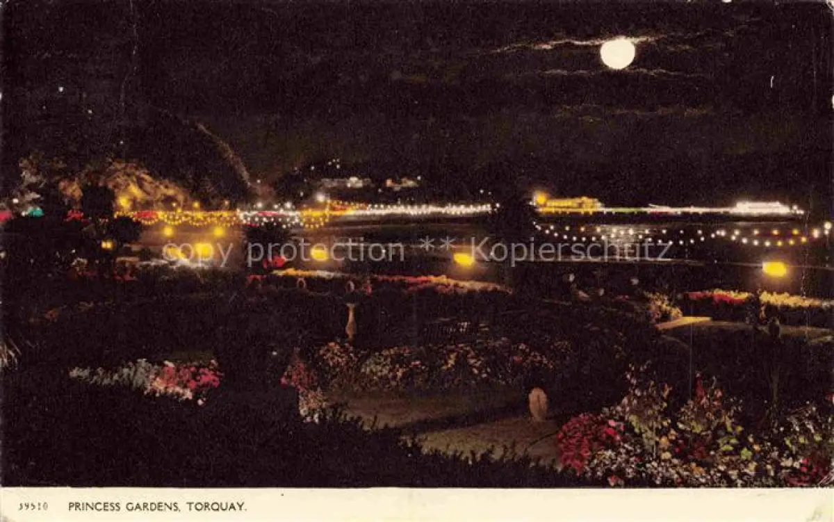 old postcard Torquay UK Princess Gardens at Night postalisch gelaufen Erhaltung siehe scans [WerneD78]