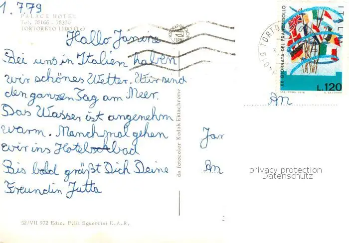 Tortoreto_Lido_IT Palace Hotel postalisch gelaufen 1979 Erhaltung siehe scans [WerneD78] WernPID7