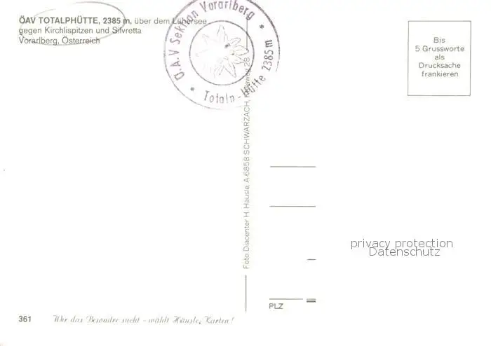 Totalphuette_2385m_Voralrlberg_AT mit Kirchlispitzen und Silvretta postalisch nicht gelaufen nach 1965 Erhaltung siehe scans [FriedD77] Frierer