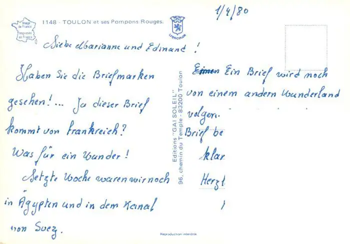 Toulon_-sur-Mer_83_Var et ses Pompons Rouges postalisch nicht gelaufen 1980 Erhaltung siehe scans [WerneD78] WernPID7