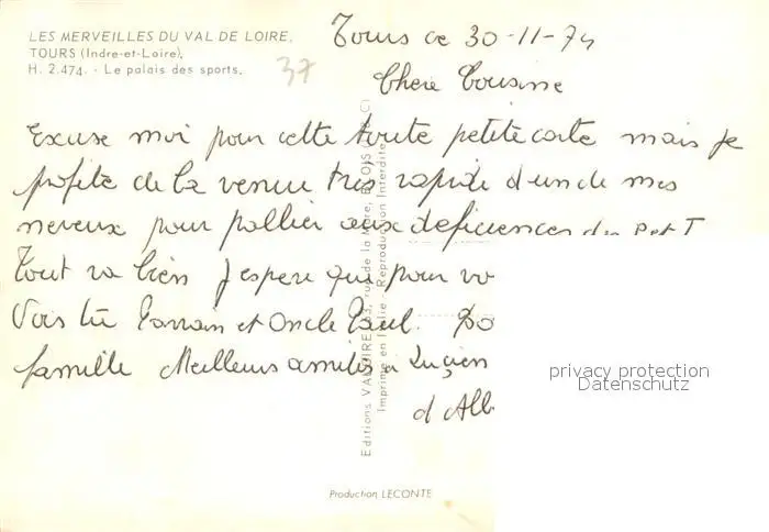 Tours_37 Palais des sports postalisch nicht gelaufen 1979 Erhaltung siehe scans [FriedD77] Frierer