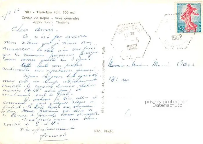 Trois-Epis_Drei-aehren Centre de Repos Vue generales Apparition Chapelle Trois-Epis Drei-aehren postalisch gelaufen 1962 Erhaltung siehe scans [WerneD78] WernPID7