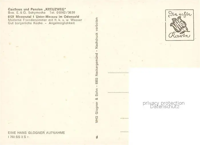 Unter-Mossau Gasthaus Pension Kreuzweg Gastraeume Weiher Unter-Mossau postalisch nicht gelaufen nach 1965 Erhaltung siehe scans [WerneD78] WernPID7