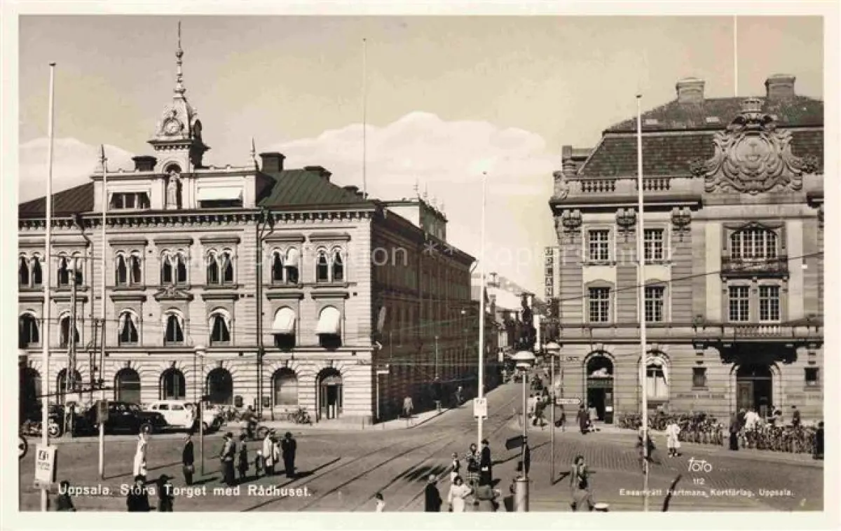 old postcard Uppsala Upsala Sweden Stora Torget med Radhuset postalisch gelaufen Erhaltung siehe scans [FriedD77]