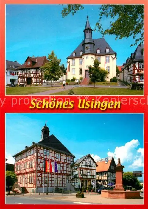 AK / Ansichtskarte Usingen Hugenottenkirche Marktbrunnen Fachwerkhaeuser Usingen