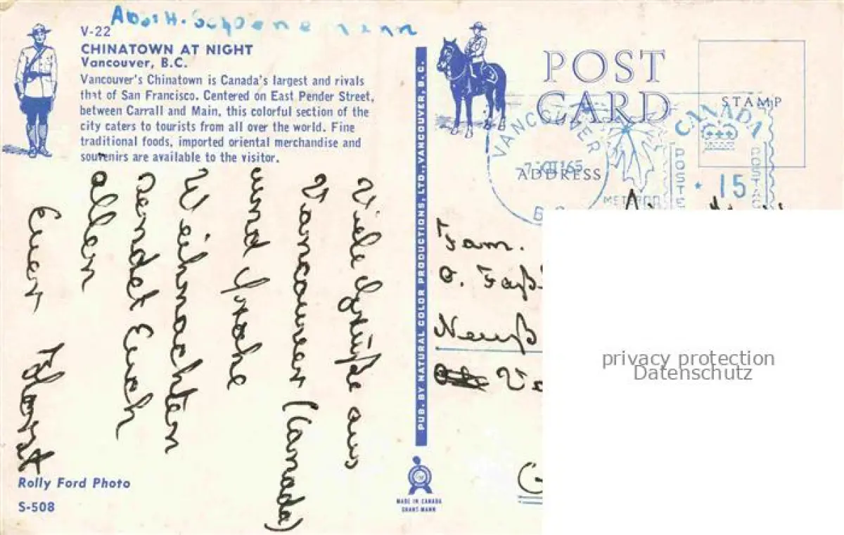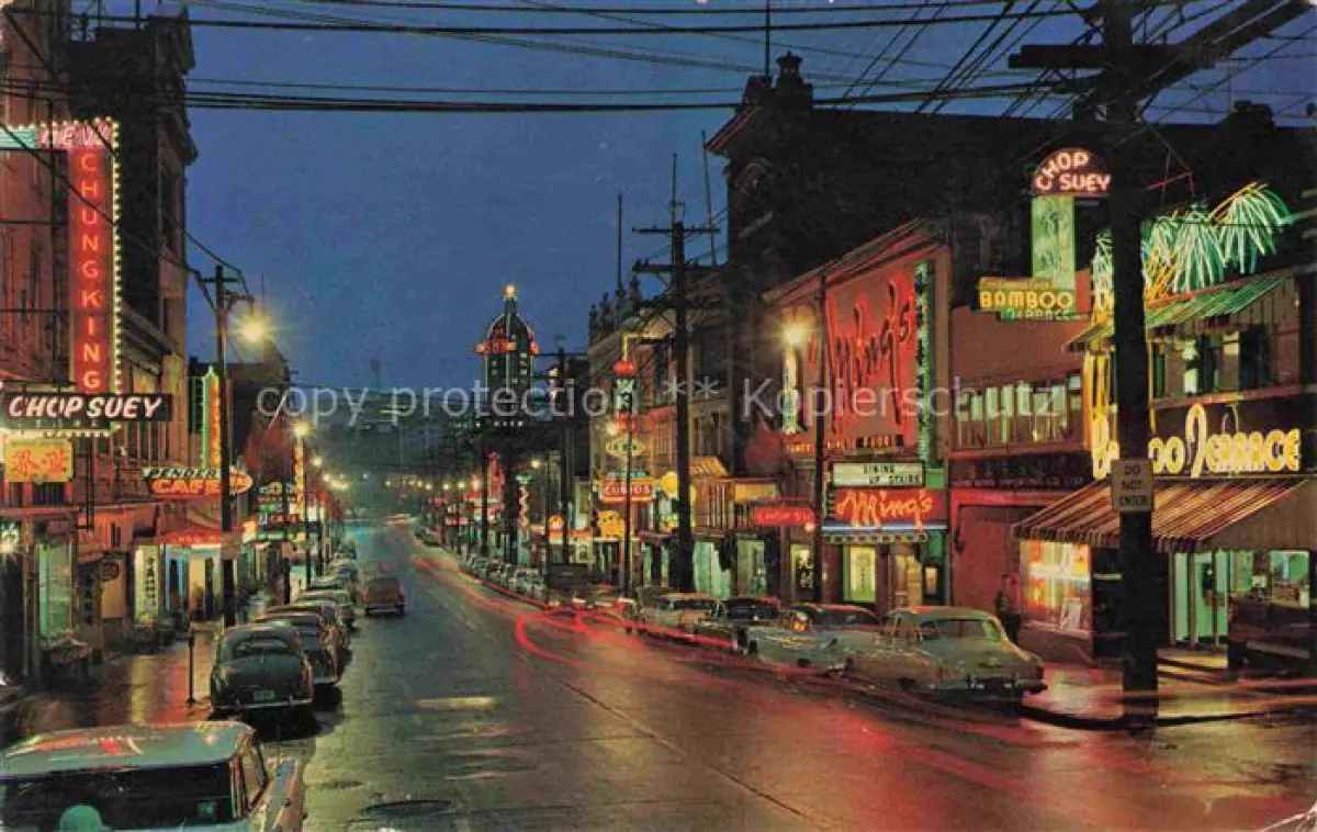 old postcard VANCOUVER BC Canada Chinatown at night postalisch gelaufen Erhaltung siehe scans [FriedD77]