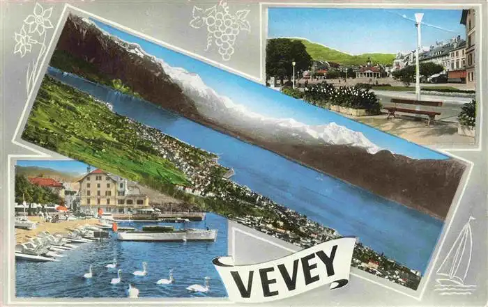 VEVEY_VD Panorama Ortspartie Stran Bootsliegeplatz Vevey_VD postalisch gelaufen 1960 Erhaltung siehe scans [WerneD78] WernPID7