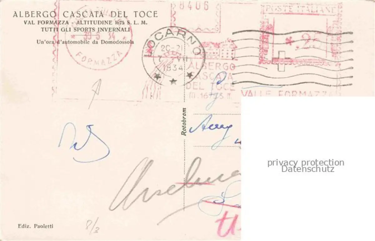 old postcard Valformazza Val Formazza Piemont IT Albergo Cascata del Toce postalisch gelaufen Erhaltung siehe scans [WerneD78]