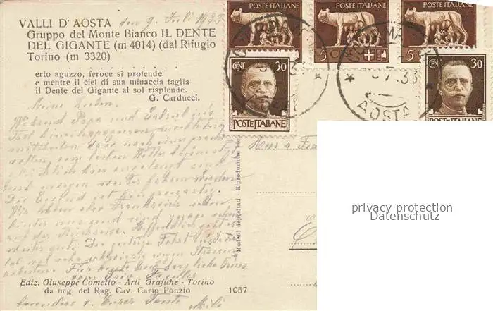 old postcard Valle d Aosta Valli d Aosta IT Gruppo del Monte Bianco Il Dente del Gigante dal Rifugio Torino postalisch gelaufen Erhaltung siehe scans [FriedD77]