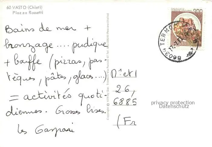 old postcard Vasto Chieti Abruzzo IT Piazza Rossetti postalisch gelaufen Erhaltung siehe scans [WerneD78]