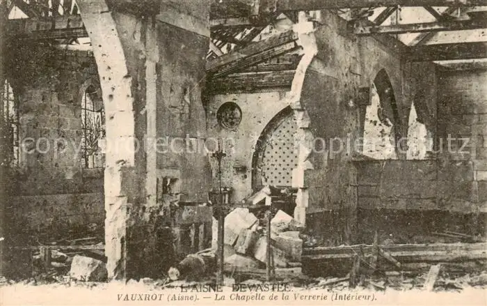 AK / Ansichtskarte Vauxrot_Soissons_02_Aisne La Chapelle de la Verrerie Interieur apres le bombardement