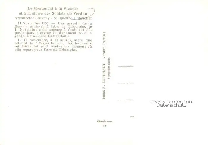 Verdun_Meuse Monument de la Victoire et à la gloire des Soldats de Verdun Verdun Meuse postalisch nicht gelaufen 1921-1965 Erhaltung siehe scans [FriedD77] Frierer
