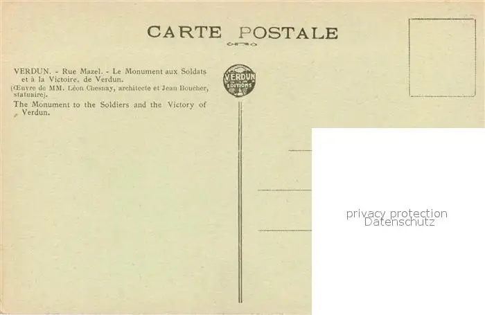Verdun_Meuse Rue Mazel Monument aux Soldats Victoire Verdun Meuse postalisch nicht gelaufen 1921-1965 Erhaltung siehe scans [NatalD47] NataID47
