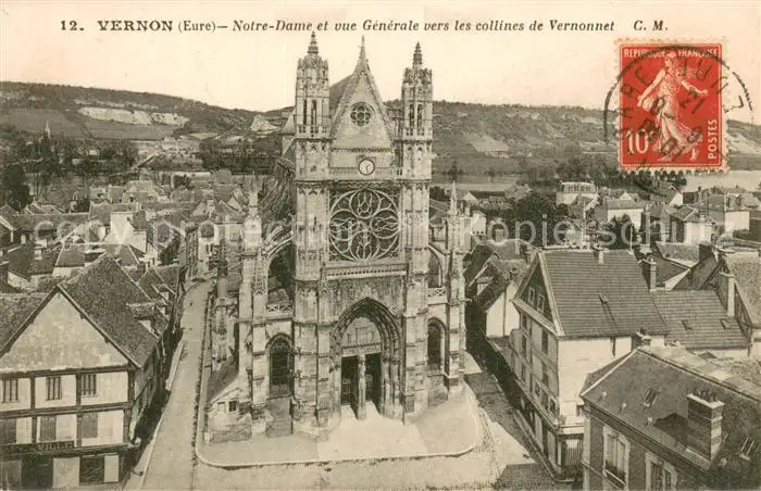 Vernon_Eure Eglise Notre Dame et vue générale vers les collines de Vernonnet Vernon Eure postalisch gelaufen 1913 Erhaltung siehe scans [FriedD77] Frierer