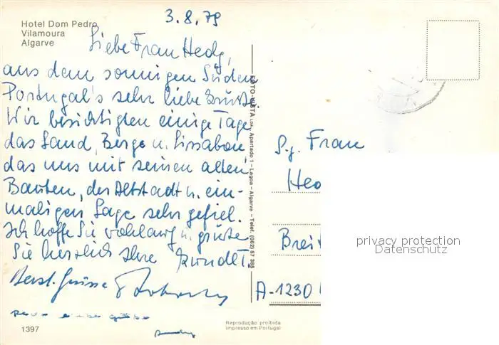 Vilamoura Hotel Dom Pedro Vilamoura postalisch gelaufen 1978 Erhaltung siehe scans [WerneD78] WernPID7