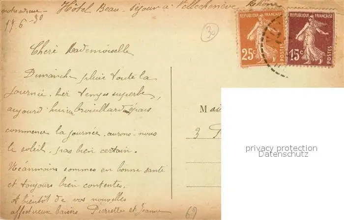 Villecheneve Vue générale Villecheneve postalisch gelaufen 1930 Erhaltung siehe scans [FriedD77] Frierer