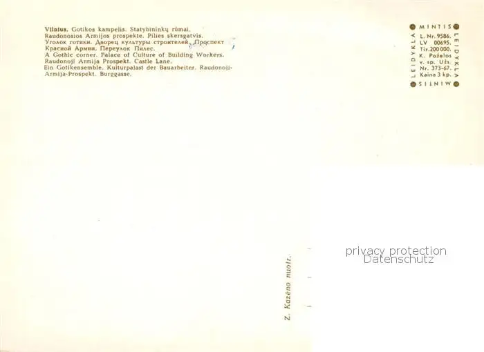 Vilnius Gothikensemble Kulturpalast der Bauarbeiter Raudonoji Armija Prospekt Burggasse Vilnius postalisch nicht gelaufen 1921-1965 Erhaltung siehe scans [WerneD78] WernPID7
