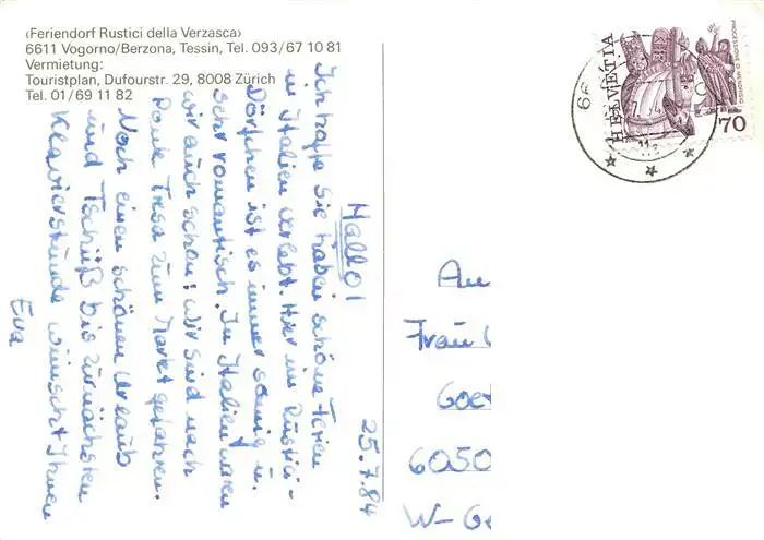 Vogorno_Locarno_TI Feriendorf Rustici della Verzasca Teilansichten postalisch gelaufen 1984 Erhaltung siehe scans [WerneD78] WernPID7