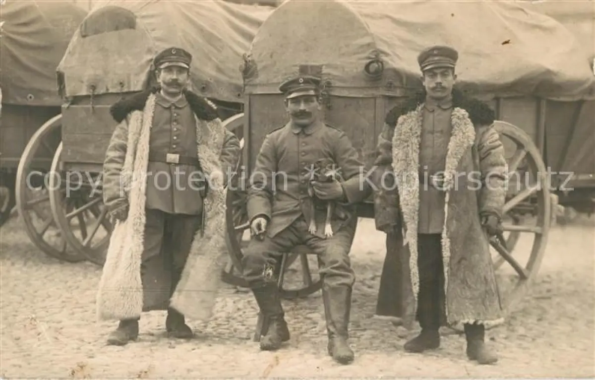 AK / Ansichtskarte WK1 Militaria Deutschland Foto Soldaten Ostfront Pelzmantel Landsturm