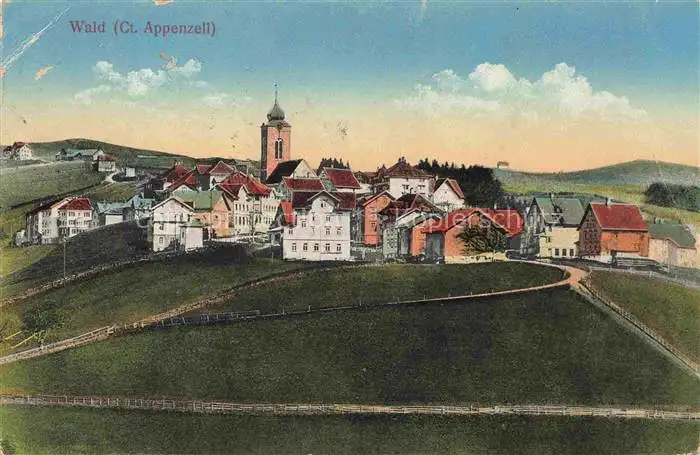 alte Postkarte Wald Appenzell AR Ansicht mit Kirche postalisch gelaufen Erhaltung siehe scans [FriedD77]