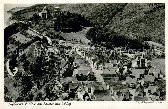 AK / Ansichtskarte Waldeck__Edersee Fliegeraufnahme Gesamtansicht m. Schloss