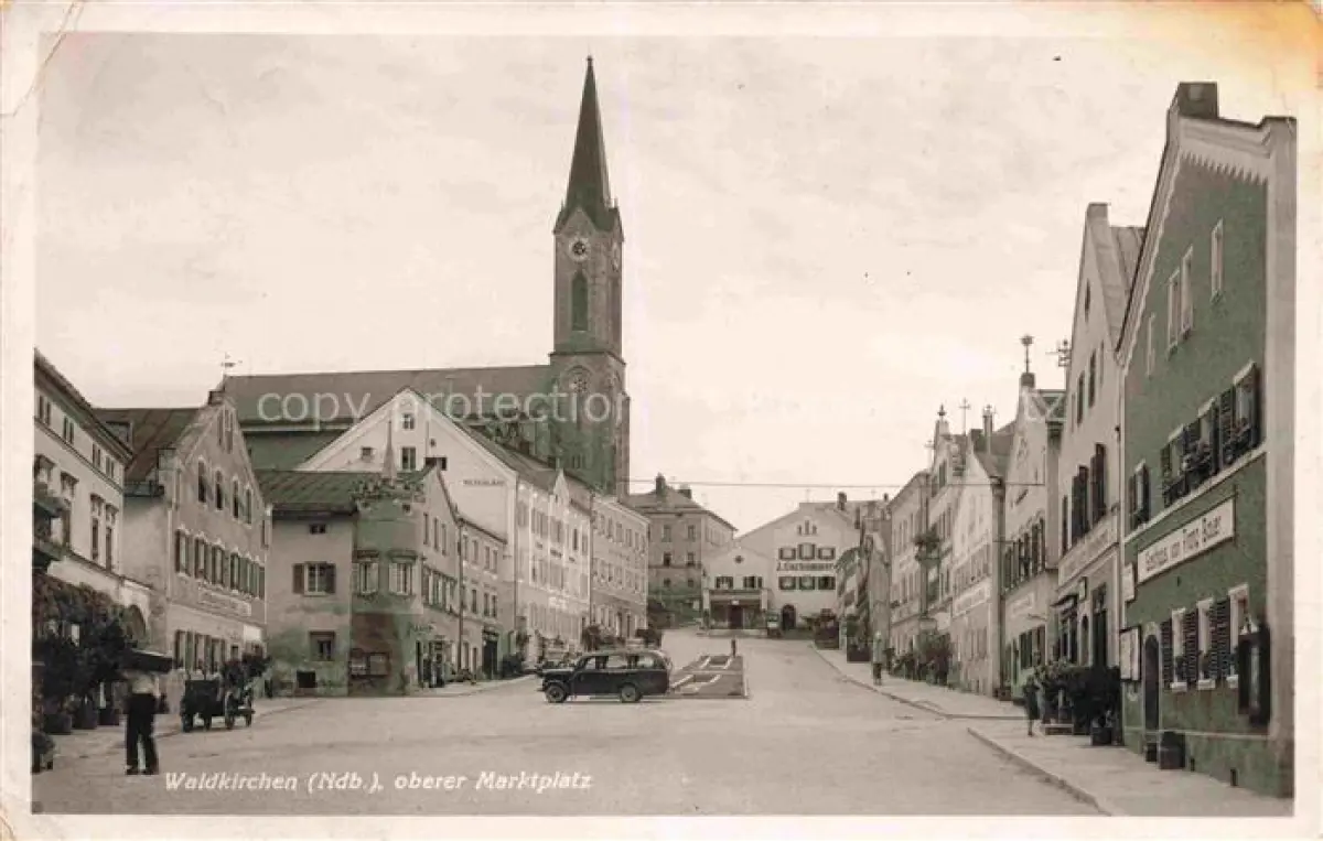 alte Postkarte Waldkirchen Niederbayern Oberer Marktplatz Kirche postalisch gelaufen Erhaltung siehe scans [WerneD78]