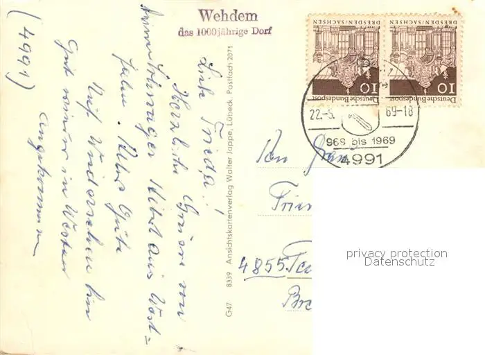 Wehden Kategorie Alte Ansichtskarten Postkarten bx85980 Wehden Kirche Gaststaette Lebensmittelgeschaeft Schule Wehden postalisch gelaufen 1969 Erhaltung siehe scans [FriedD77]